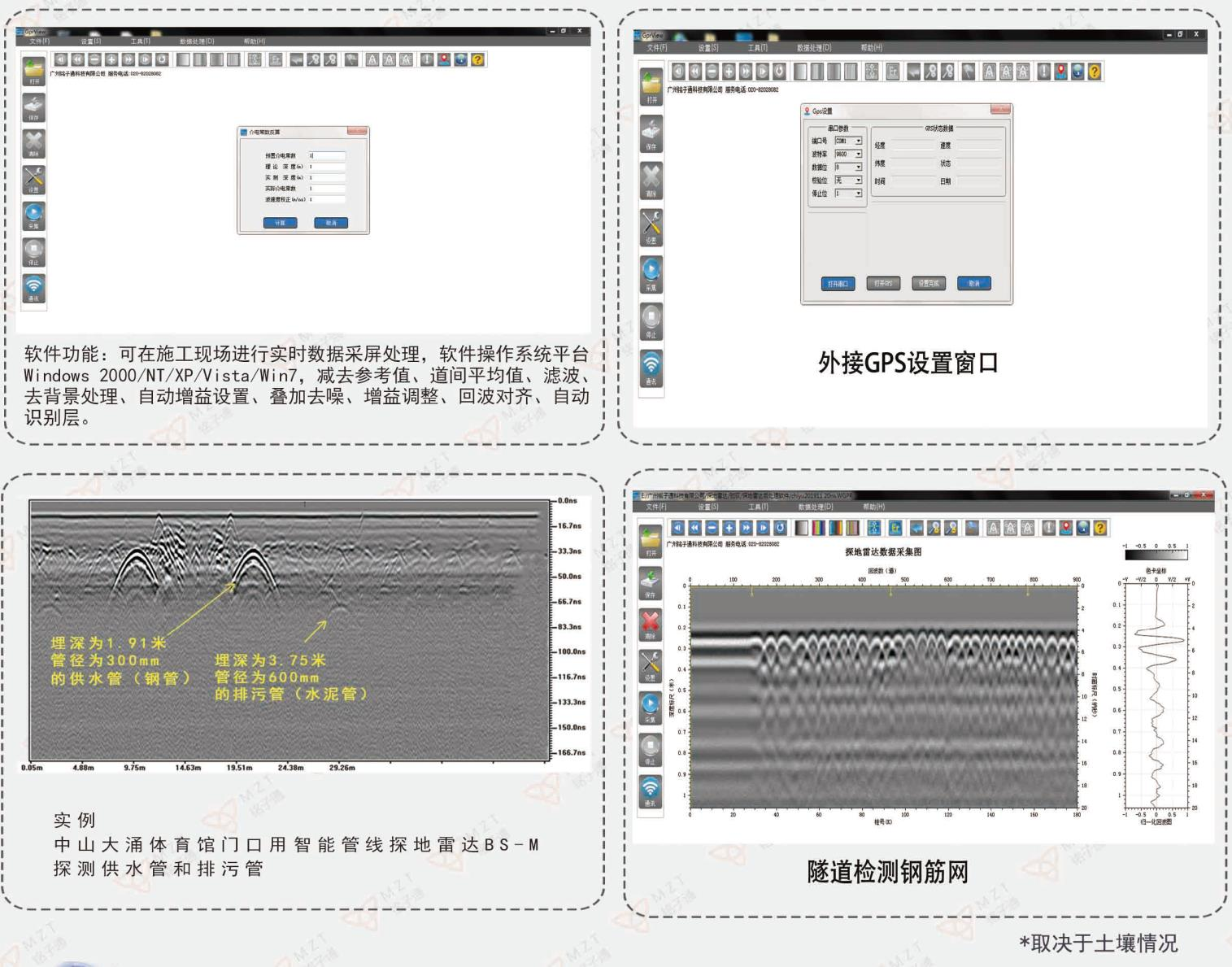 管线探测探地雷达MZT-200M用于地下未知管线探测,其应用主要包括: