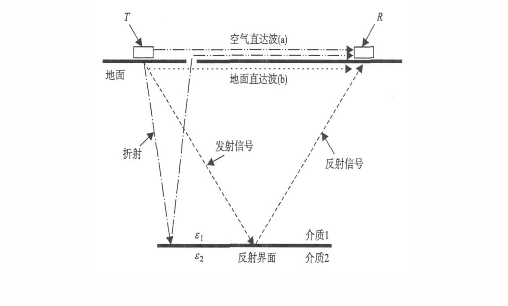 地质雷达是利用高频电磁波(MHz~GHz)以宽频带短脉冲形式,由地面通过发射天线送入地下,电磁波在地下传播时,当遇到存在电性差异的地下介质或目标体时,雷达波部分能量会发生反射返回地面,由接收天线接收,并以波形或图像的形式存储在雷达主机中,以待进一步地分析处理和解释。